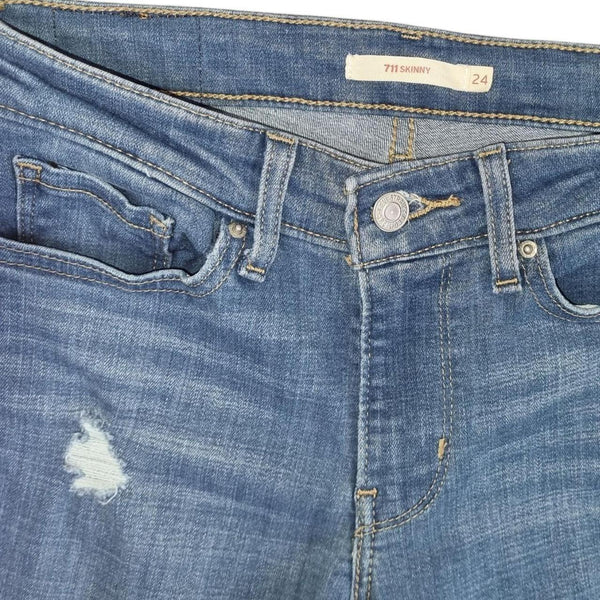Levi’s 711 Skinny Jeans – Distressed Blue Denim – Size (W24 L32) 6 AU