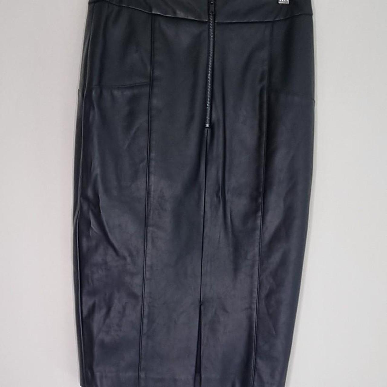 Lily Loves black faux leather pencil skirt. Back zipper.