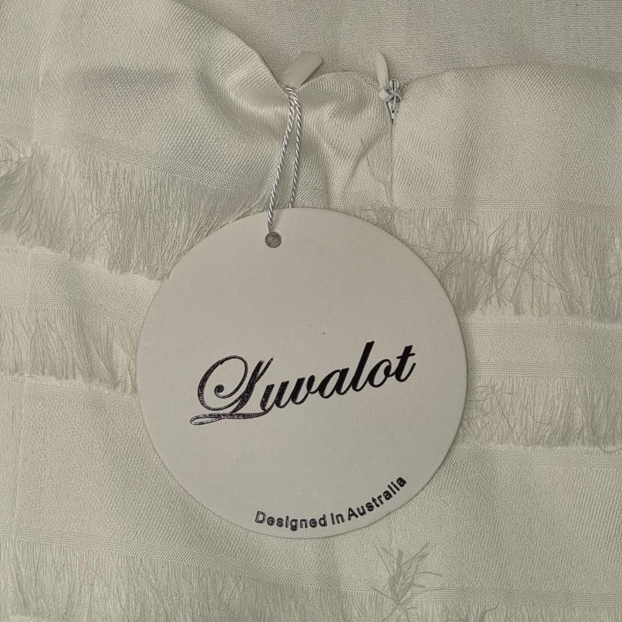 Chic and playful Luvalot mini dress in crisp white — perfect for summer parties, cocktails, or special events. Designed with delicate horizontal fringe panel detailing throughout and finished with a tiered ruffle hem for a feminine touch. Adjustable spaghetti straps and a back zip closure ensure a flattering fit. A fun yet elegant statement piece that’s versatile for cocktail events, parties, or date nights.