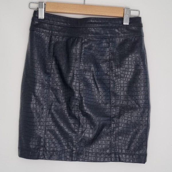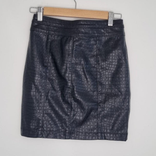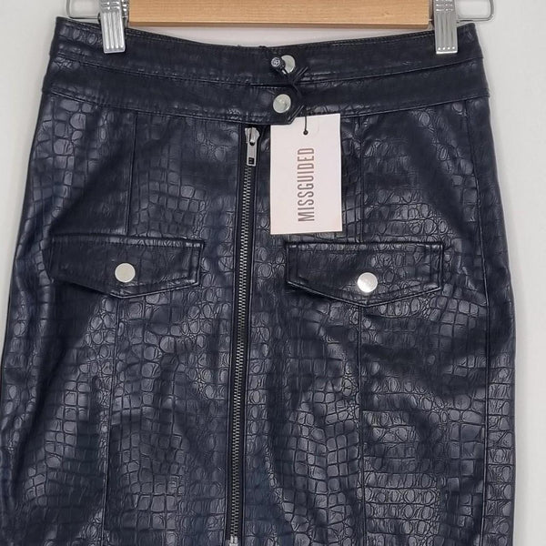 Croc Pocket Detail Black Faux Leather by Missguided- Mini Skirt Size 8 AU