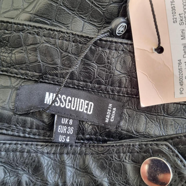 Croc Pocket Detail Black Faux Leather by Missguided - Mini Skirt Size 8 AU