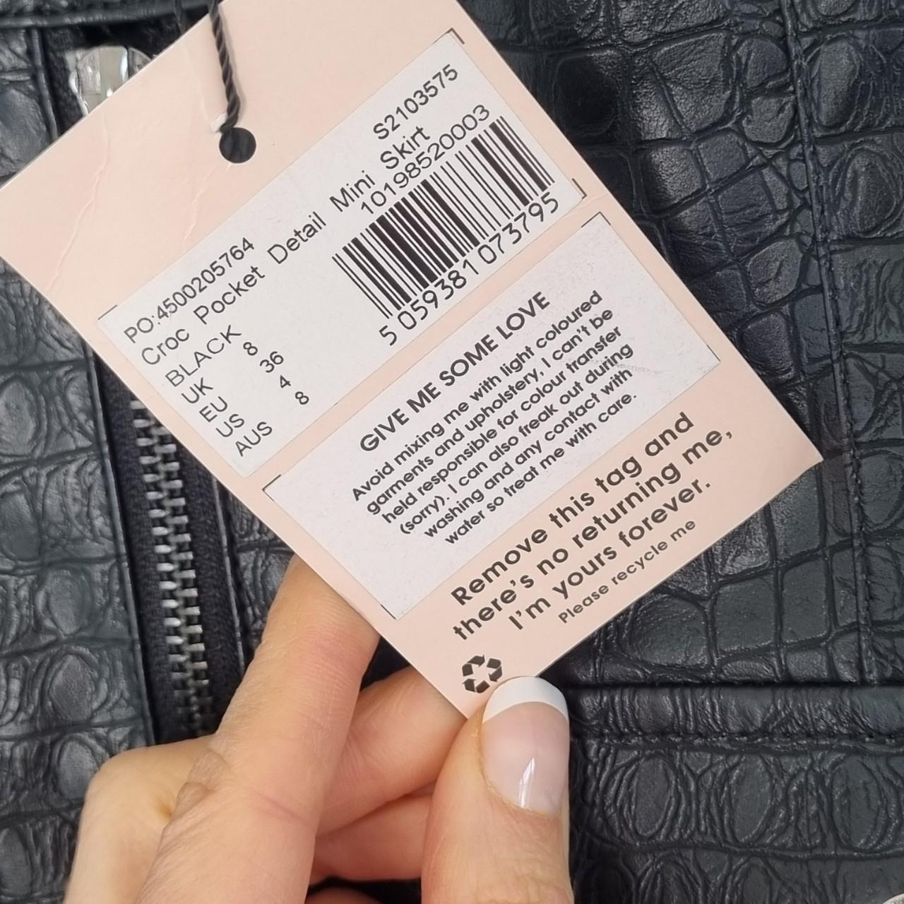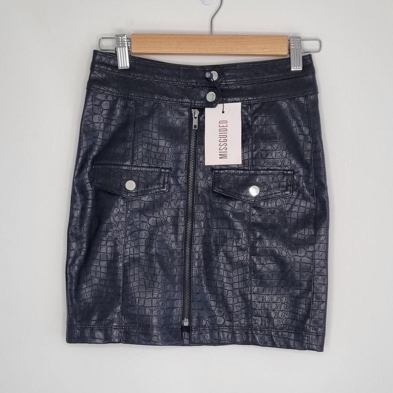 Missguided Croc Pocket Detail Black Faux Leather Mini Skirt - Australian size 8.