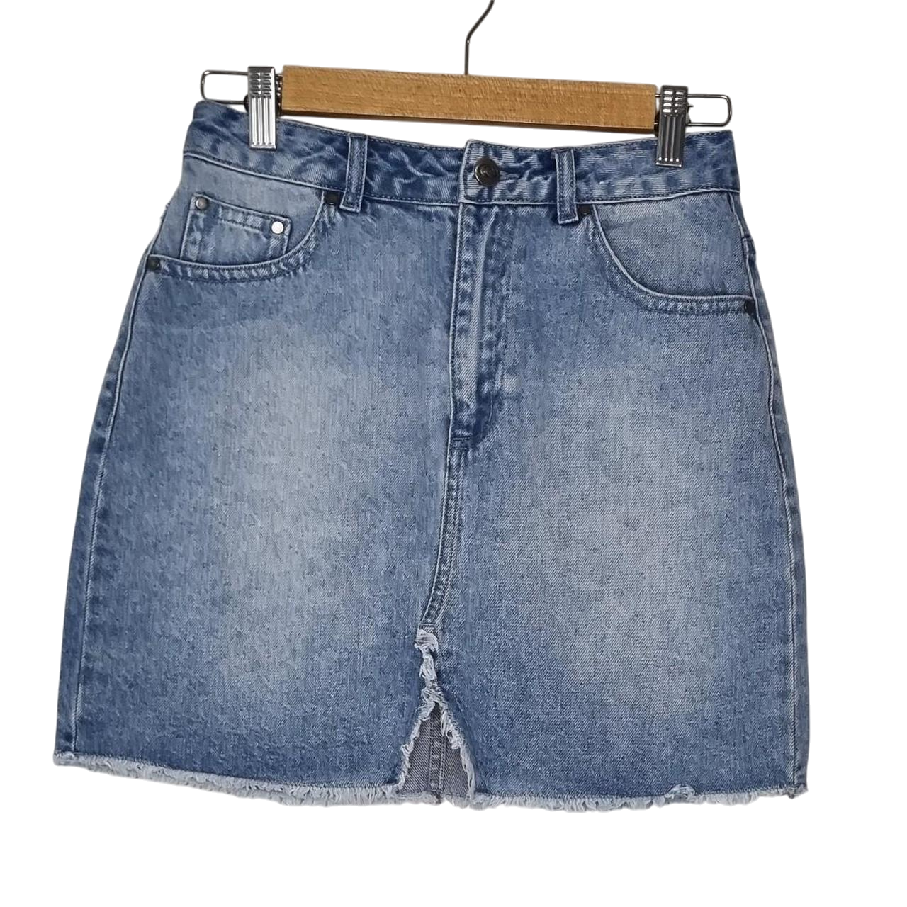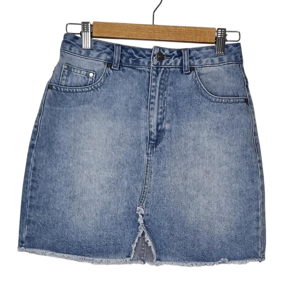 Piping Hot Denim Mini Skirt Raw Frayed Hem Size 8 AU
