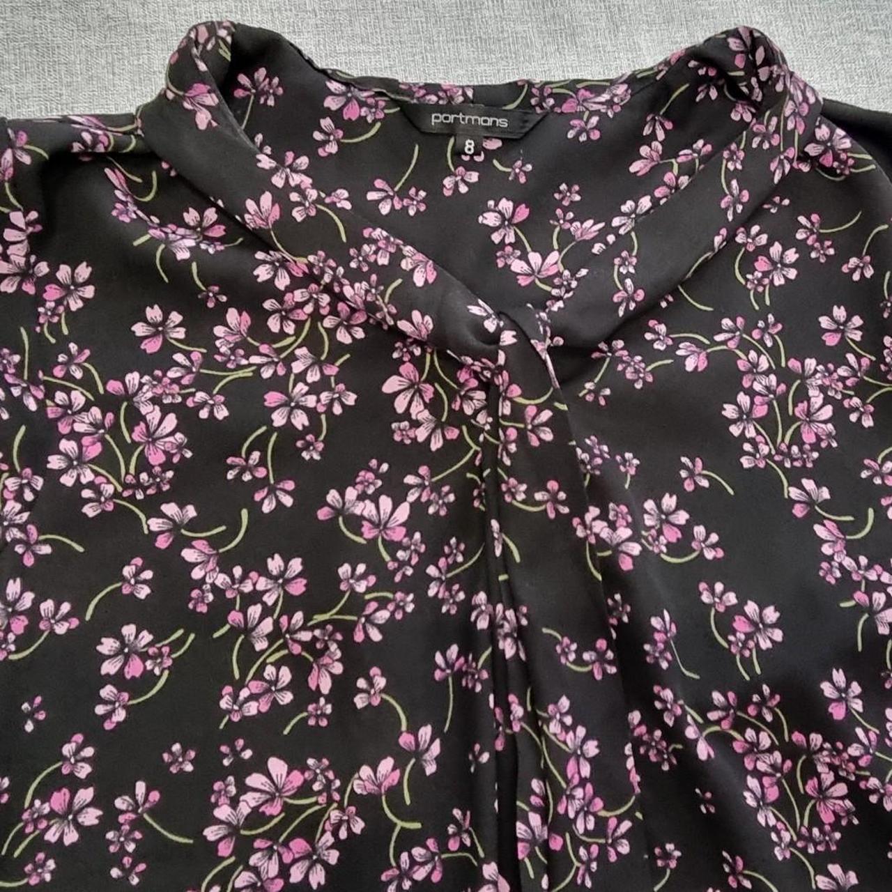 Portmans Floral Blouse Top Black And Pink Size 8 AU