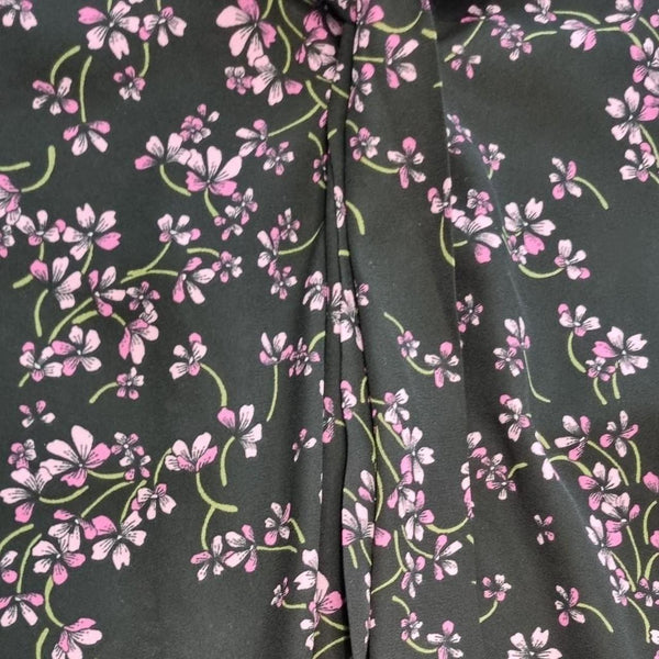 - Black base with pink/purple floral pattern