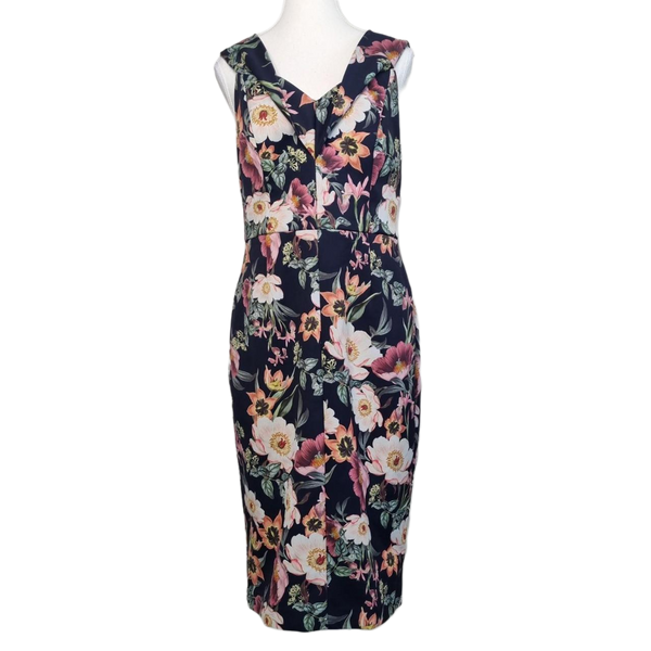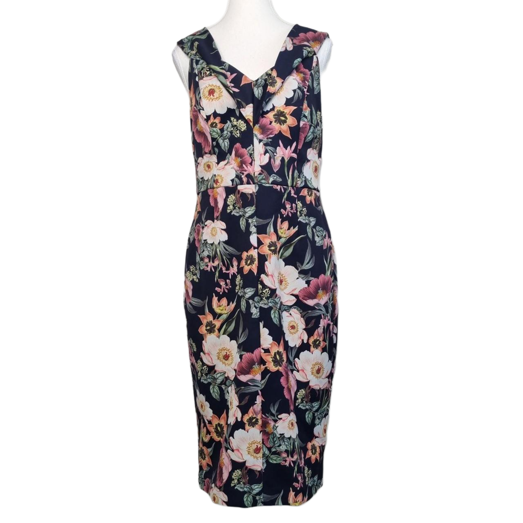 Portmans Signature Navy Floral Pencil Dress Navy Size 14
