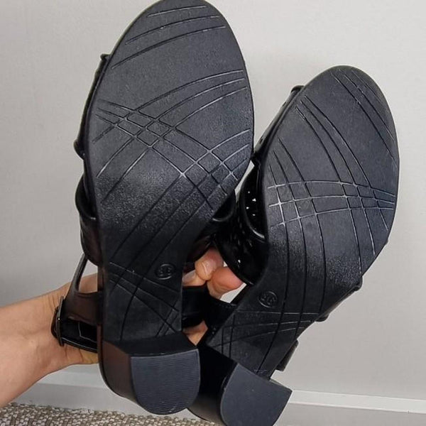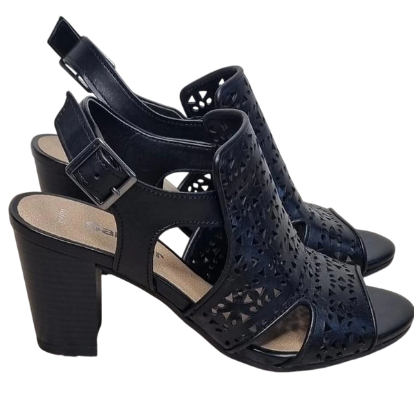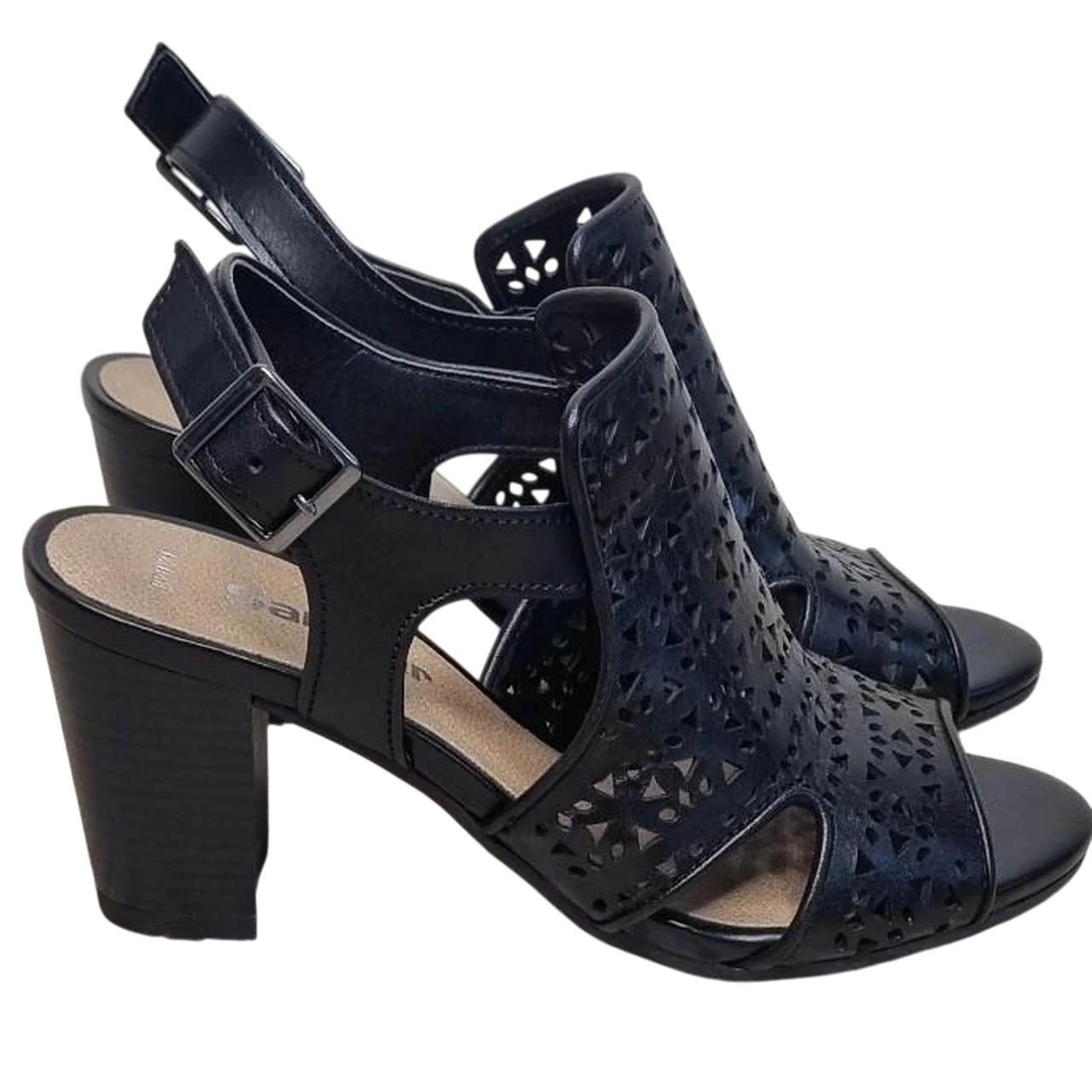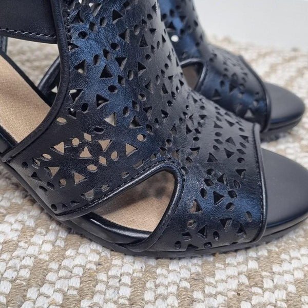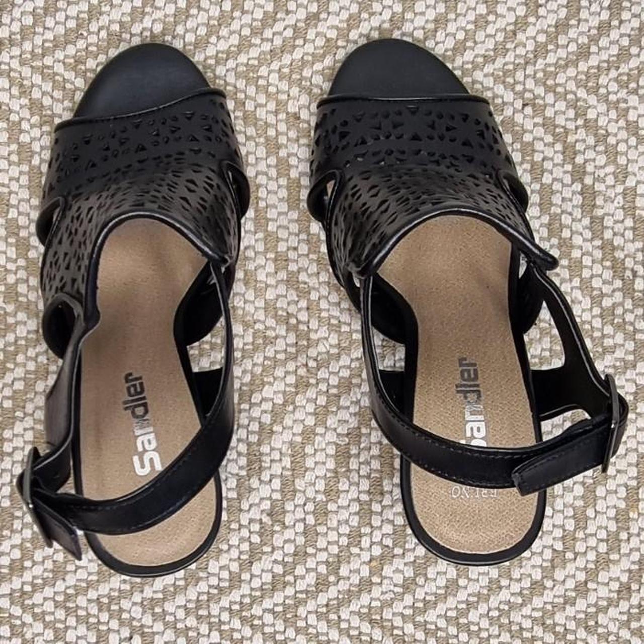 Sandler Black Leather Block Heel Sandals Size 36 (AU 5 / US 5.5 / UK 3.5) Step out in style with these chic Sandler block heel sandals. Made from black leather with a modern laser-cut geometric design, they feature an open toe, slingback with adjustable buckle, and a sturdy block heel that blends comfort with elegance. - Brand: Sandler - Style: Block heel sandals (laser-cut design) - Colour: Black - Material: Leather upper (synthetic lining/sole) - Size:.