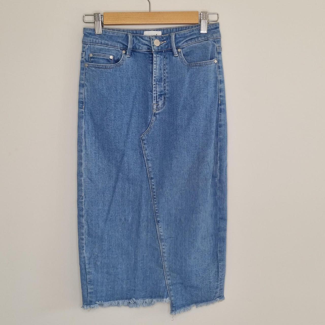 Seed Heritage Denim Midi Skirt – Raw Hem – Size 6 AU. Timeless and versatile Seed Heritage denim midi skirt.