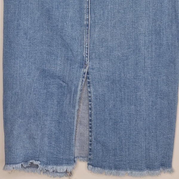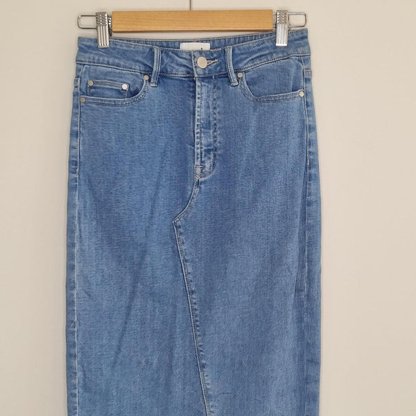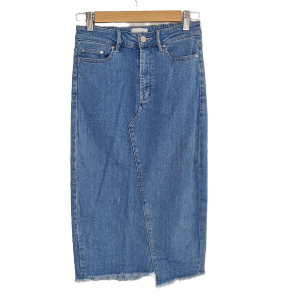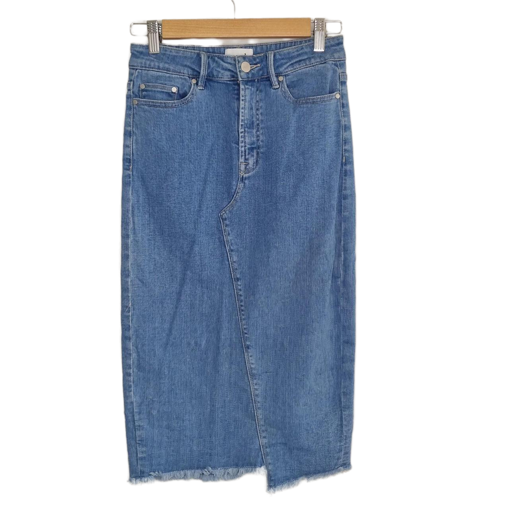 Seed Heritage Denim Midi Skirt Raw Hem Blue Size 6 AU