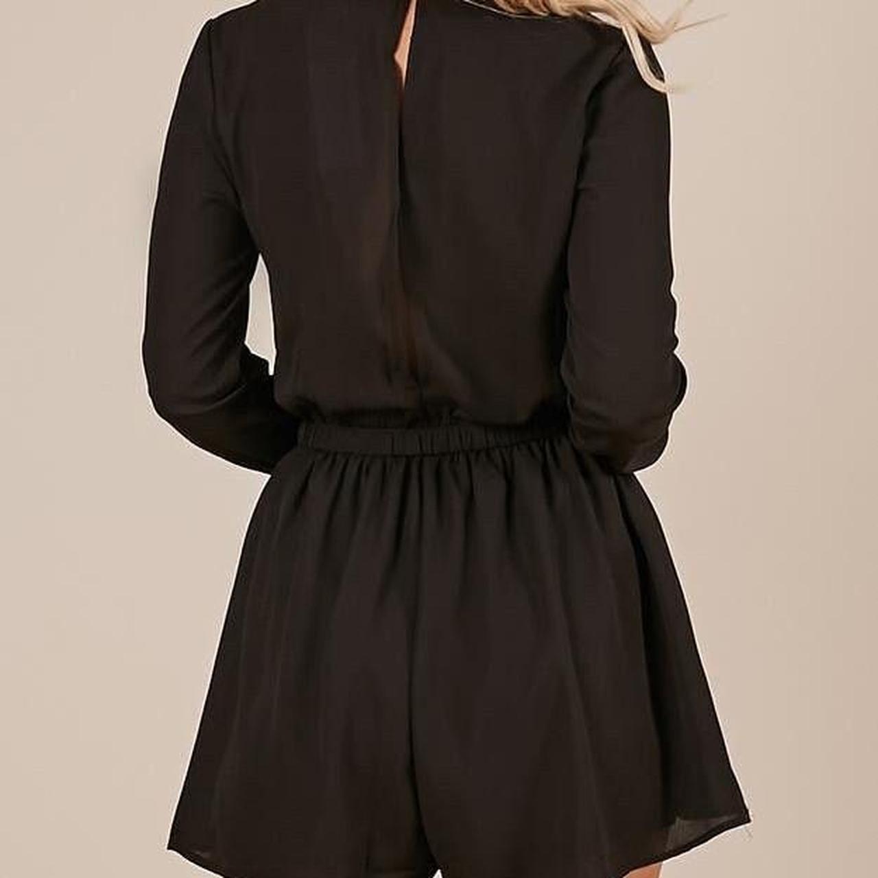 Chic and versatile black long sleeve playsuit/romper from Showpo. Features a flattering wrap-style front with cinched drawstring waist for comfort and shape. Perfect for nights out, parties, or dressed down with sneakers for daywear. Long sleeves, cinched stretch waist with tie, wrap-front style, button closure at back of neck. A timeless and flattering wardrobe staple – easy to dress up with heels and accessories.