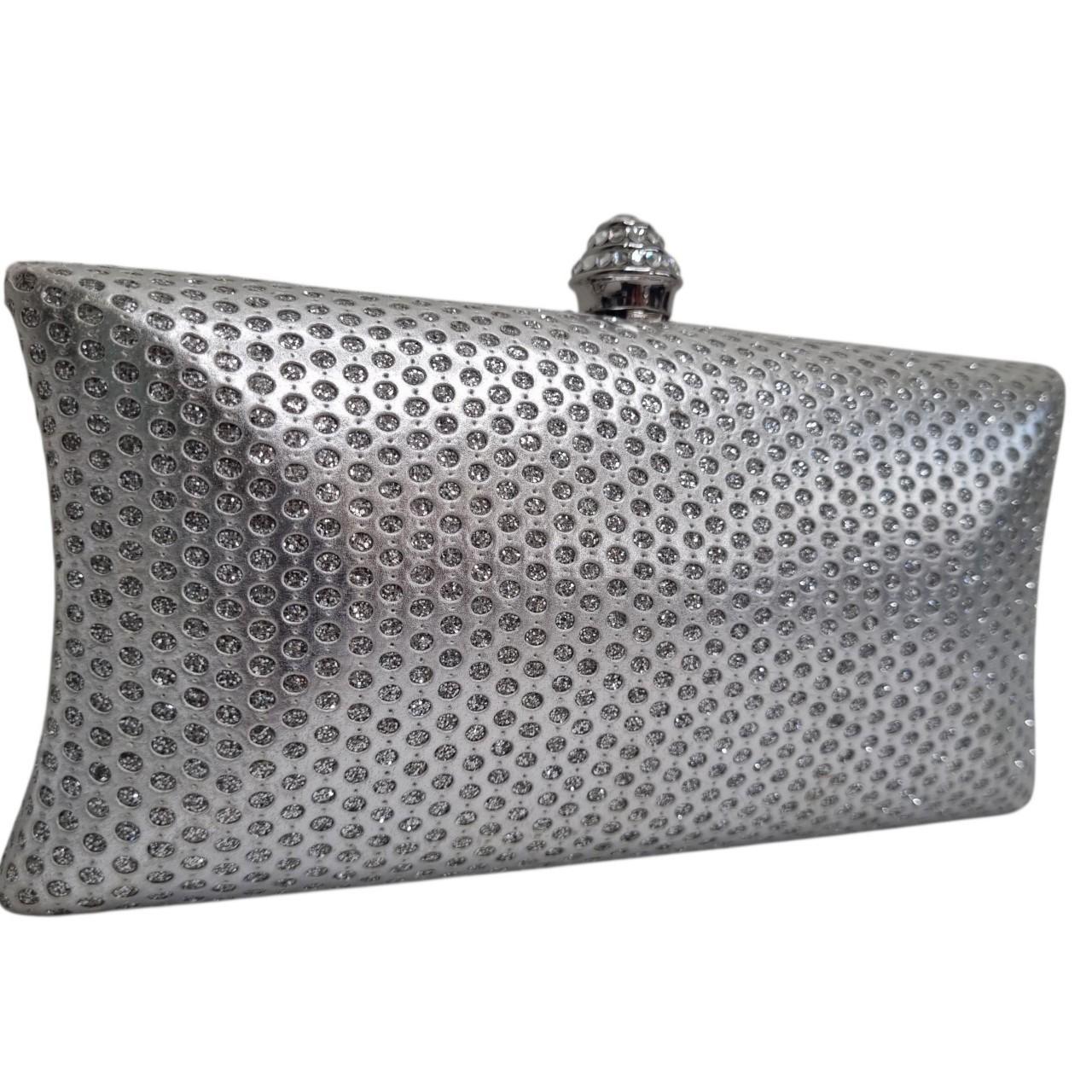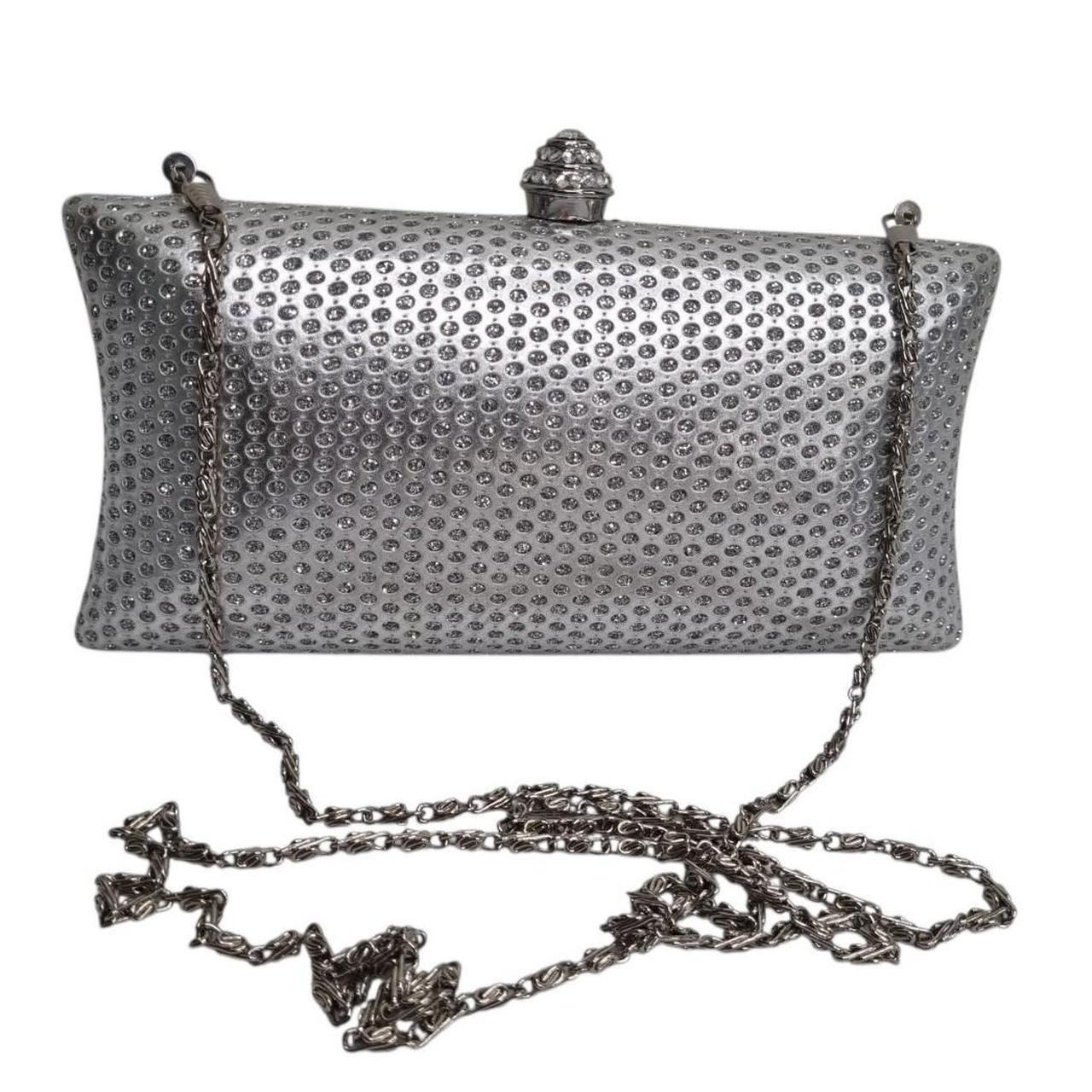 Silver Rhinestone Evening Clutch Bag – Includes 2 Chains