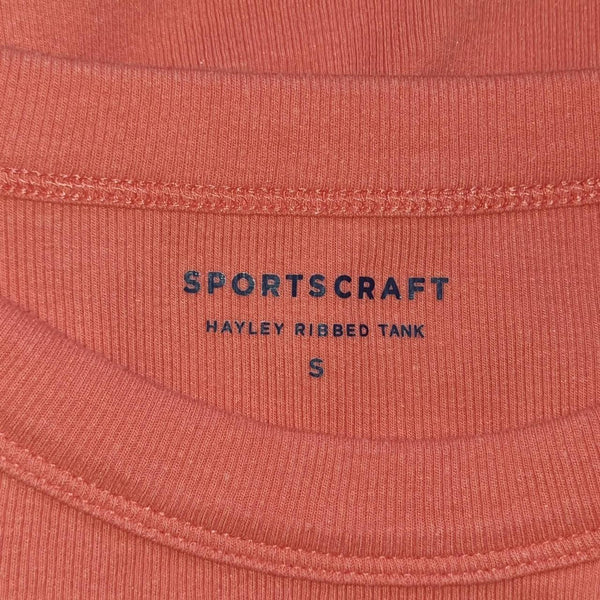 Sportscraft Hayley Ribbed Tank Orange Size S Womens Casual Top Classic ribbed tank from Sportscraft, crafted from a soft cotton-modal blend with added stretch for comfort. A versatile wardrobe staple thats perfect for layering or wearing on its own. - Brand: Sportscraft - Size: Small (S) - Colour: Orange / Coral - Style: Ribbed tank top - Neckline: Crew neck - Material: 55% Cotton, 40% Modal, 5% Elastane Condition: Excellent pre-owned condition. Perfect.