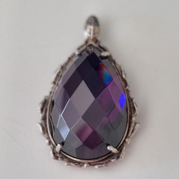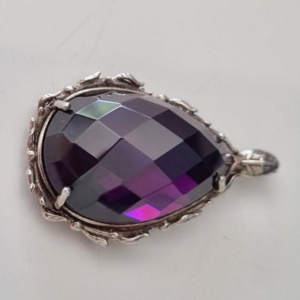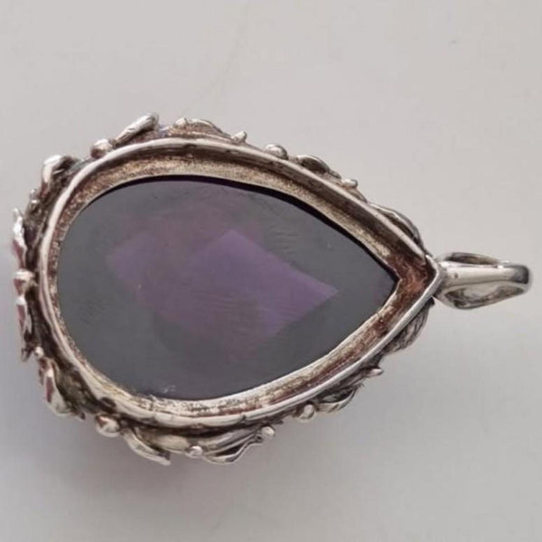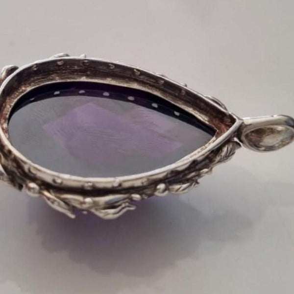 Sterling Silver and Amethyst Crystal pendant. 38gm. Pendant only. No chain included. Size: 40mm x 30mm