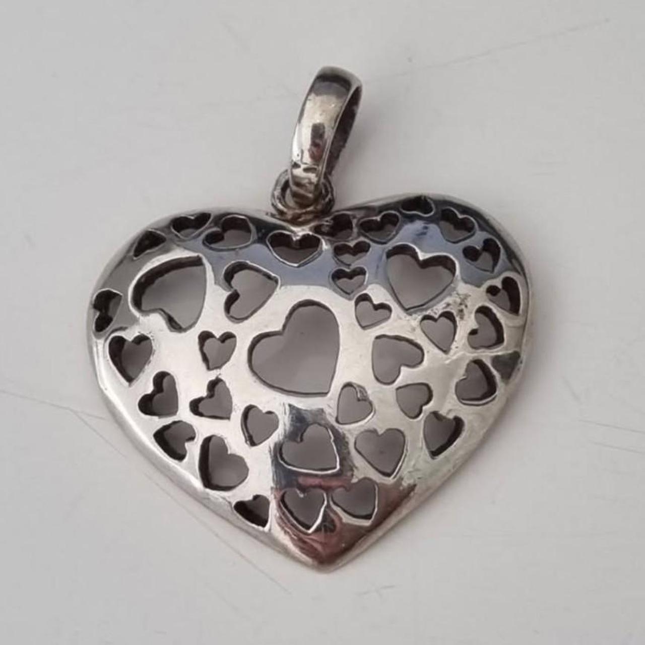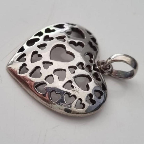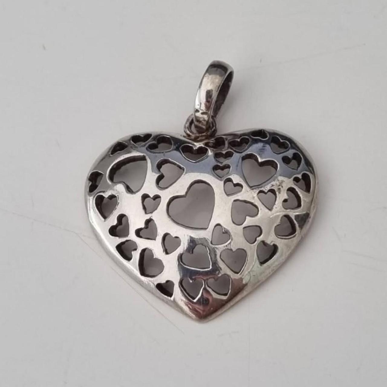 Sterling Silver heart pendant. As shown in photos. Pendant only. Does not include a chain. 6gm. Size: 28mm x 23mm plus loop