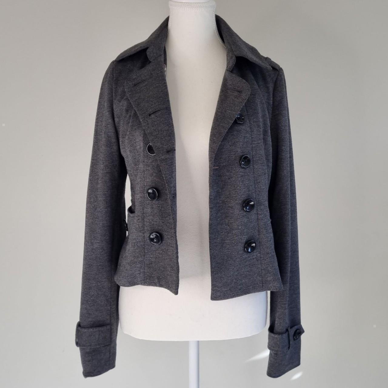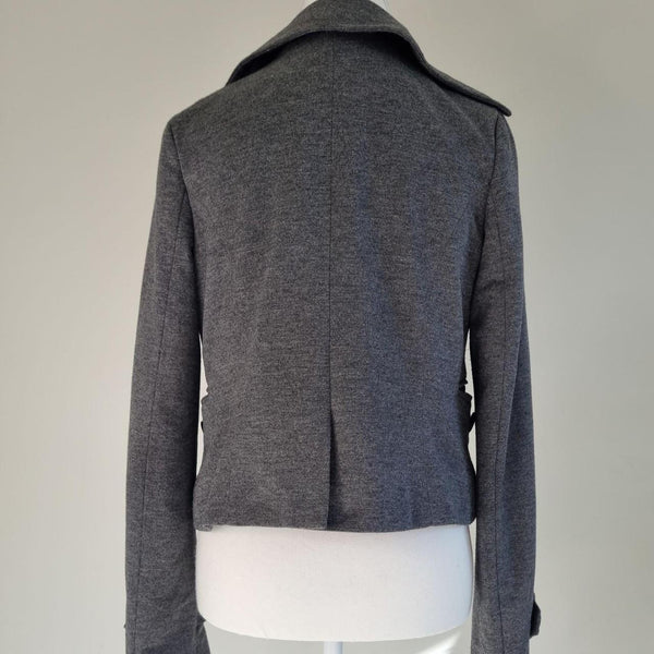 Valley Girl Grey blazer jacket with buttons. Lined in Blue satin.