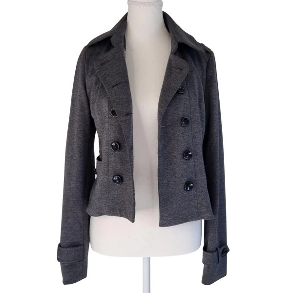Valley Girl Grey blazer jacket with buttons. Lined in Blue satin.