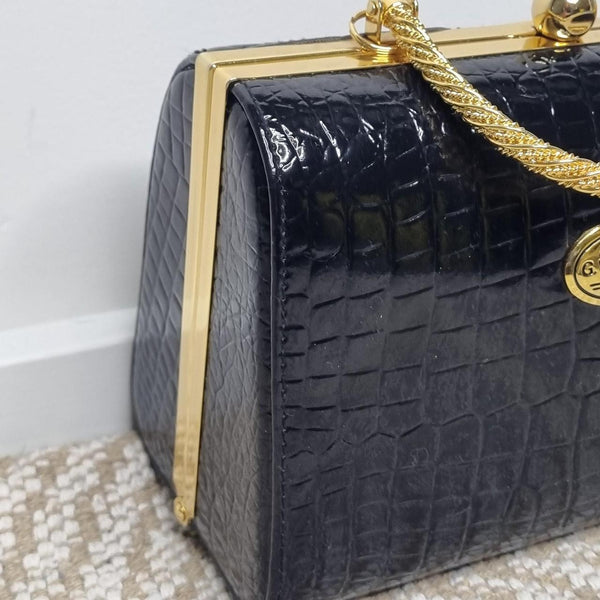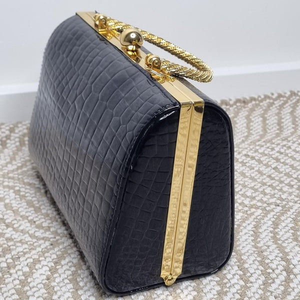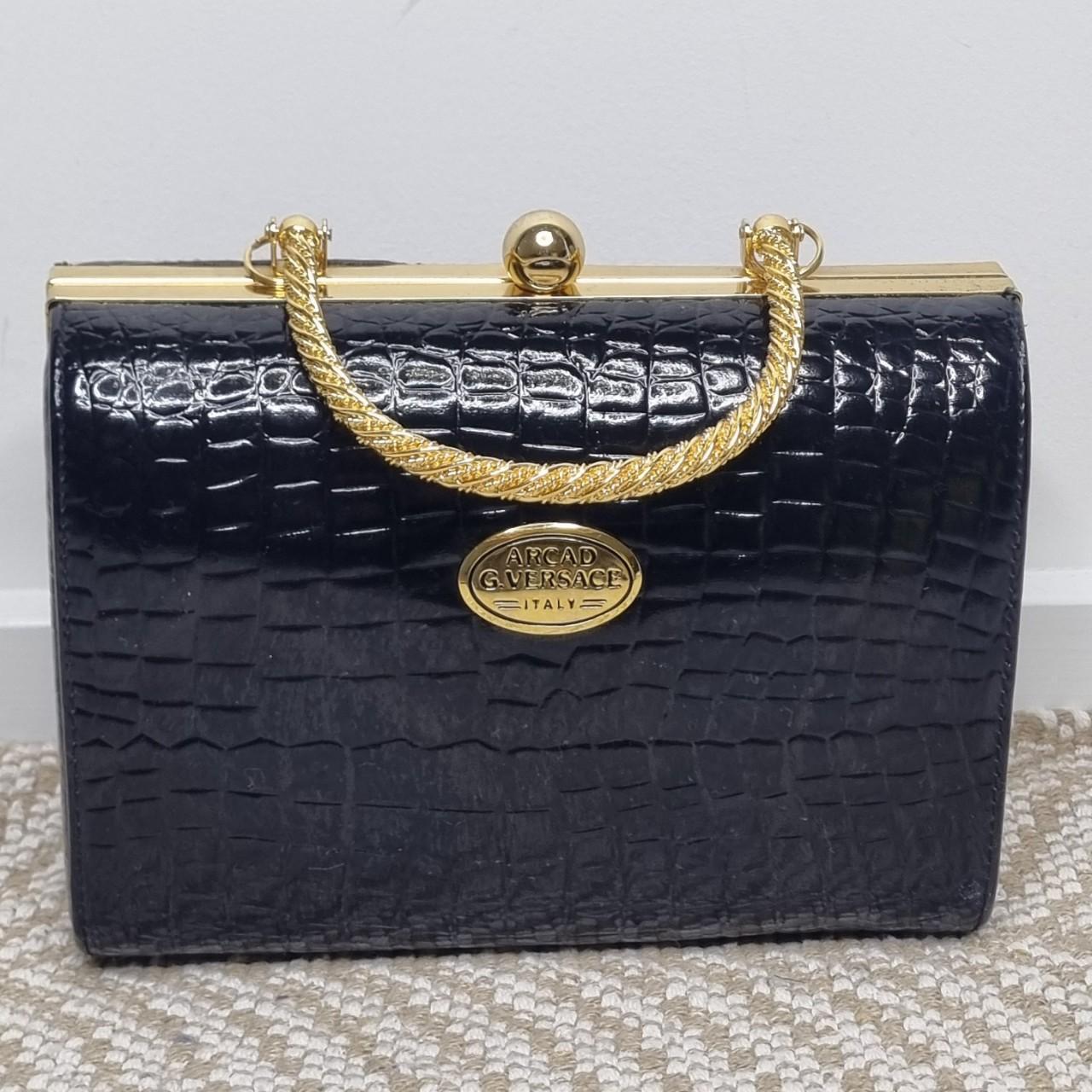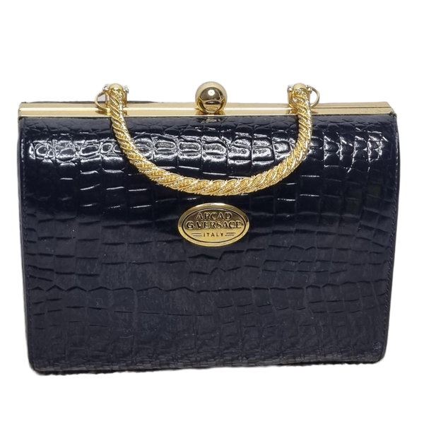Vintage Arcad G. Versace Black Croc-Embossed Frame Bag – Italy/Spain
