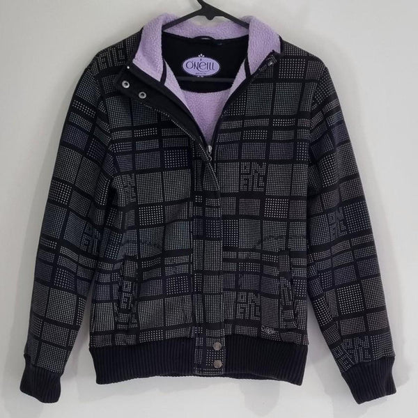 Vintage Black and purple O'Neill zip-up jacket. Fleece teddy lining. Excellent condition. Size 8.