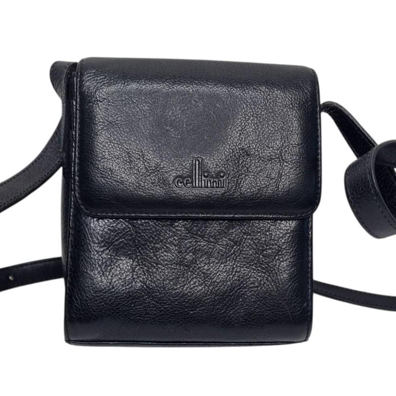 Cellini by Jane Shilton Black Genuine Buffalo Leather Crossbody Bag Vintage Shoulder Bag