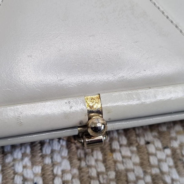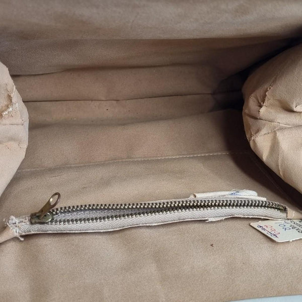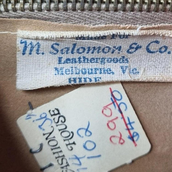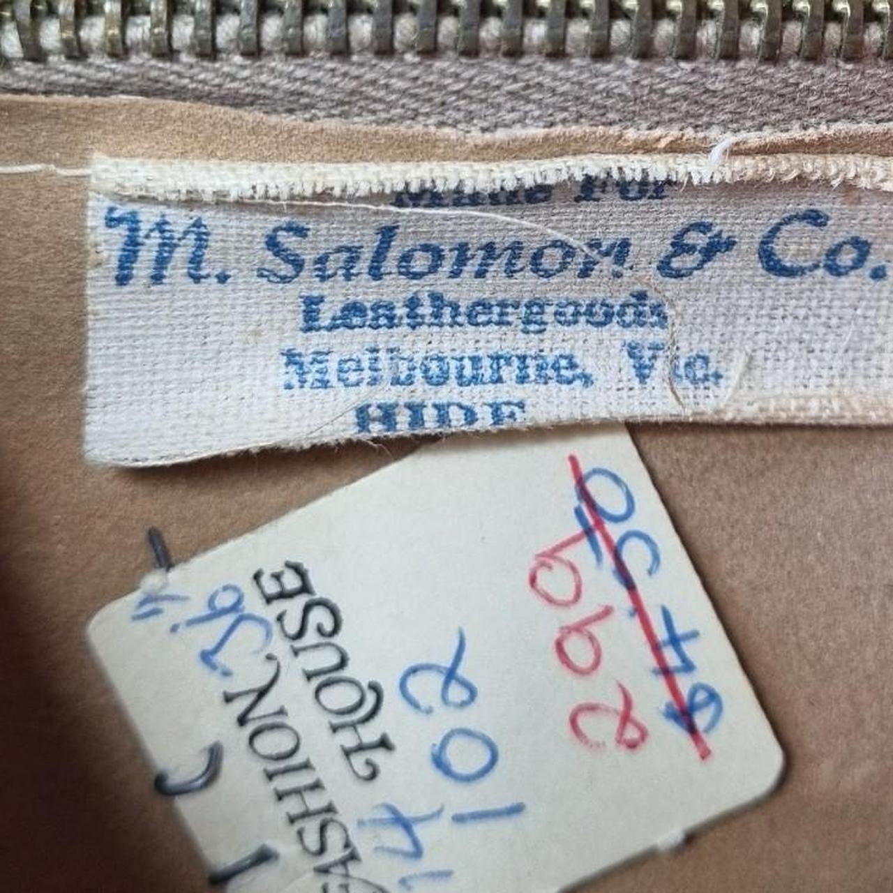Vintage M. Salomon & Co. Leather Handbag. Melbourne. Genuine Cowhide 1960s Rare Designer Rare vintage leather handbag by M. Salomon & Co., Melbourne, renowned Australian leather goods makers. Crafted in genuine cowhide with structured boxy silhouette, top handle, kiss-lock clasp, and gold-tone hardware. Original interior tag intact. Lined with tan fabric, featuring zip pocket. Brand: M. Salomon & Co. (Melbourne, Australia) - Material: Genuine Cowhide.